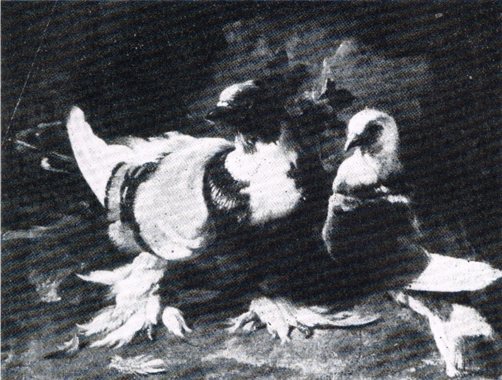 Een ander charmant verschijnsel is het “hupje” van vooral de duivinnen, na een paring of zomaar in een enthousiast moment in een kooi, op de paradeplank of elders. De afzet is dan met 2 pootjes en de landing ook, typisch voor ons ras. Ook de doffers laten ons dit “sprongetje” regelmatig zien, met name voor of na het paringsritueel.