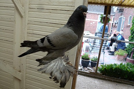 Het werd tijd naar Peize te vertrekken, daar zitten Rikus en Kinie vast al op ons te wachten. En ja hoor, we werden hartelijk ontvangen met een drankje en snel even een eerste blik naar de duiven en hun nieuwe onderkomens werpen. (meer hierover in IN & OM januari 2016 en in Kleindier Magazine van maart 2017.)