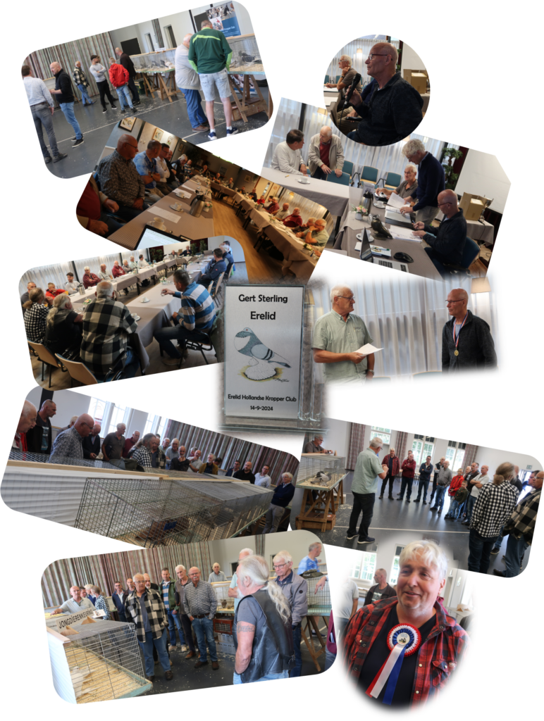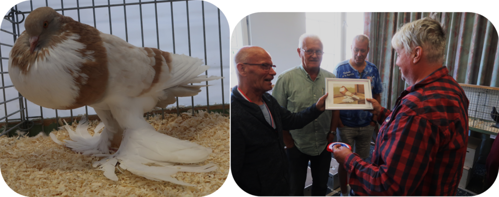 Gert was 10 jaar voorzitter en is al 50 jaar lid. Hij wordt even gevraagd uit de vergadering te stappen, waarna zeer snel wordt overeengekomen dat Gert tot Erevoorzitter van de Club wordt benoemd. Door Jan Markwat wordt Gert benoemd, waarna Fedde nog even uitgebreid ingaat op de indruk-wekkende carrière van ridder Gert in de duivensport en de Club. Hierbij komt o.m. langs: zijn Zwartbonten, uitgebreide kennis over de Club en de NBS, kennis over de genetica, activiteiten voor de Club (kooien hier en op shows de volière – door weer en wind!), etc. Op de inkooidag loopt Gert alle HKs langs om ze extra krullen te geven. Gert, wij zijn je zeer dankbaar en je hebt je Erelidmaatschap meer dan verdiend.