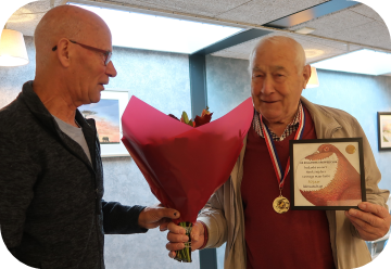 De aanwezige Erediploma winnaars, en Wim te Brake na ontvangst thuis.