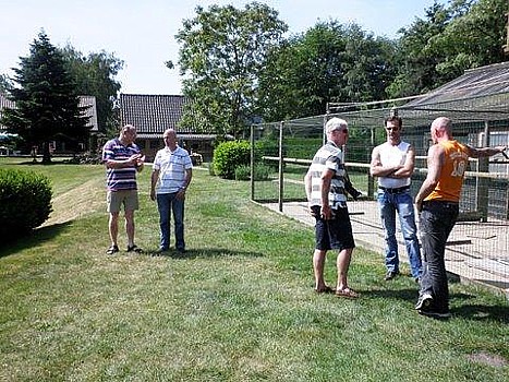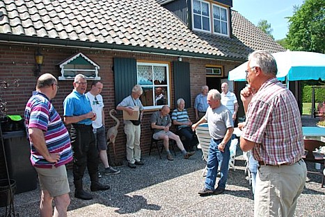 Een overijverige stagiëre had tijdens een schoonmaakbeurt van het hok ook maar de eieren verwijderd. Dat deed Hans ook altijd met onbevruchte eitjes. Na een uitvoerige rondleiding werd ons voor de terugreis nog wat drinken aangeboden. Toon nam nog even het woord en bedankte Hans voor de gastvrijheid en de anderen voor hun aanwezigheid.