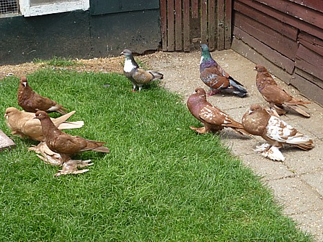 Wim heeft een kleine tuin die aan drie kanten omgeven wordt door duivenhokken, bevolkt door verschillende rassen, maar de Hollandse Kroppers vormen verweg het merendeel.