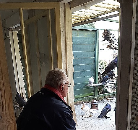 Het meeste geniet Fedde van zijn duiven als ze hem herkennen wanneer hij de garage uitkomt en de duiven op de plank in ren lopen te paraderen met hun vleugels omhoog of klappend met hun vleugels tegen elkaar als ze aankomen vliegen.