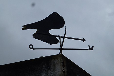 Piet is een echte doehetzelver met zijn oude trekker, timmerman van beroep, zelf de windwijzer maken: