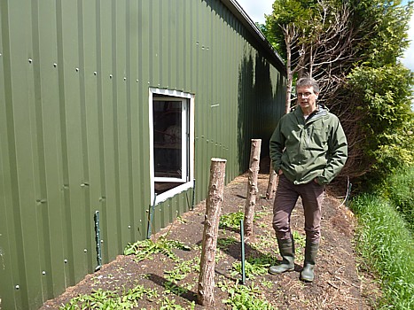 Het begin is er, aan de binnenkant van de loods gaat hij een nachthok van minstens 6x2,5 meter maken.