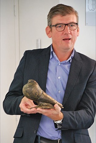Nu biedt zoon Barend een prachtig `bronzen` beeld, gemaakt door Marleen Brouwer, aan als prijs.